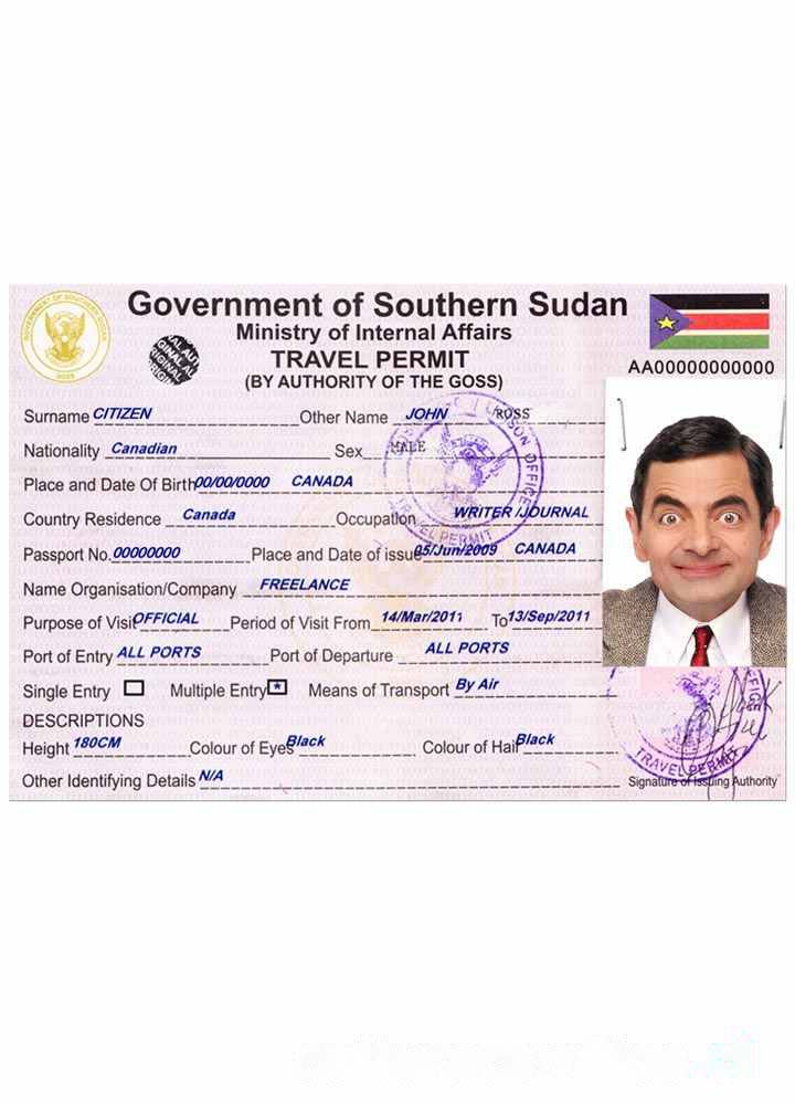 SOUTH SUDAN travel permit download template file