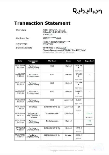 Be the first to review “Spain Rebellion Pay transaction statement Word and PDF template download template file”