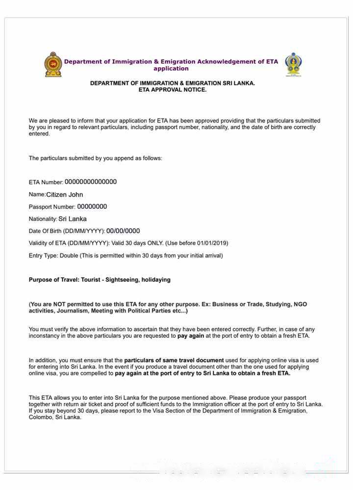 SRI LANKA e visa download template file