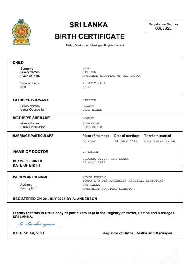 Sri Lanka vital record birth certificate Word and PDF template download template file