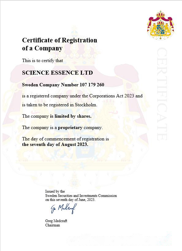 Sweden business registration certificate Word and PDF template download template file