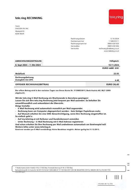 Sweden Tele Ring business utility bill template in Word and PDF formats download template file