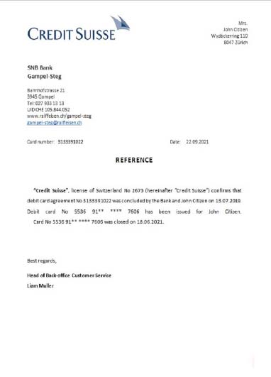 Switzerland Credit Suisse closure reference download template file