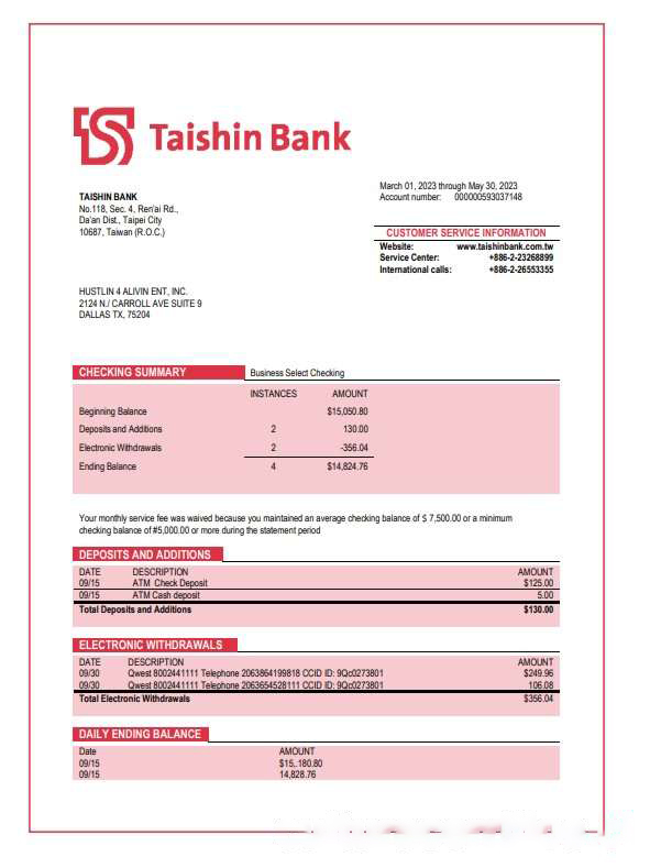 Be the first to review “Taishin Bank enterprise statement Word and PDF template download template file”