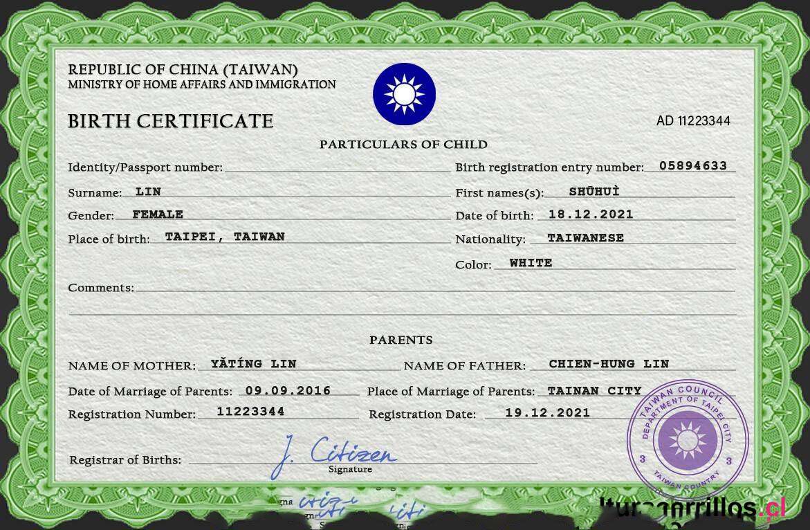 Taiwan birth certificate download template file