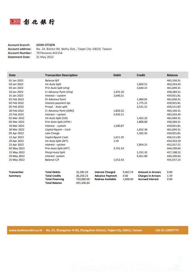 Be the first to review “Taiwan Chang Hwa Bank statement download template file”