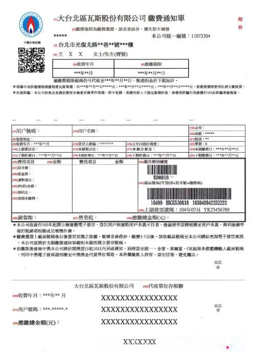 Taiwan gas utility bill in PSD format download template file