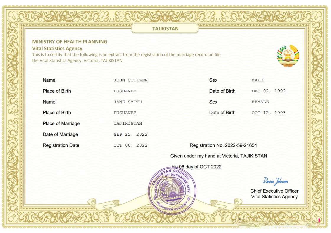 Tajikistan marriage certificate Word and PDF template download template file