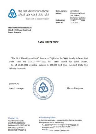 Tajikistan The First MicroFinanceBank reference download template file