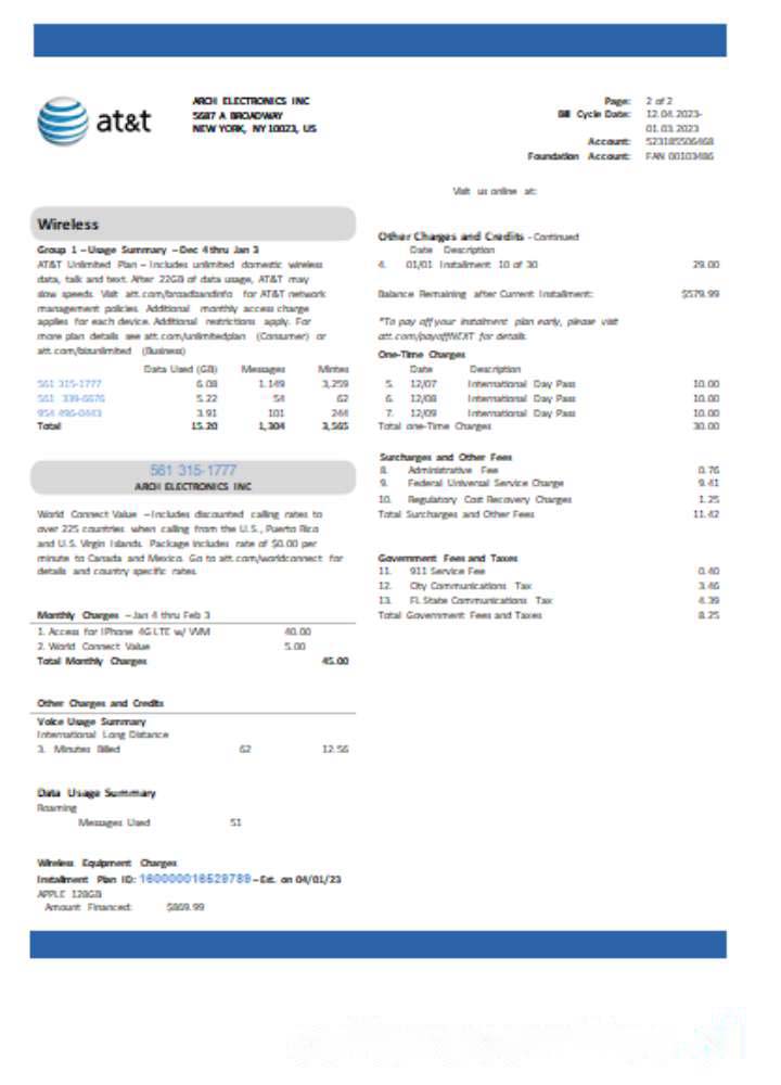 Texas AT&T telecommunications utility business bill, page 2, SCR download template file