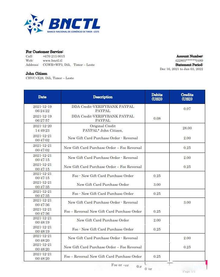 Timor Leste BNCTL bank statement download template file