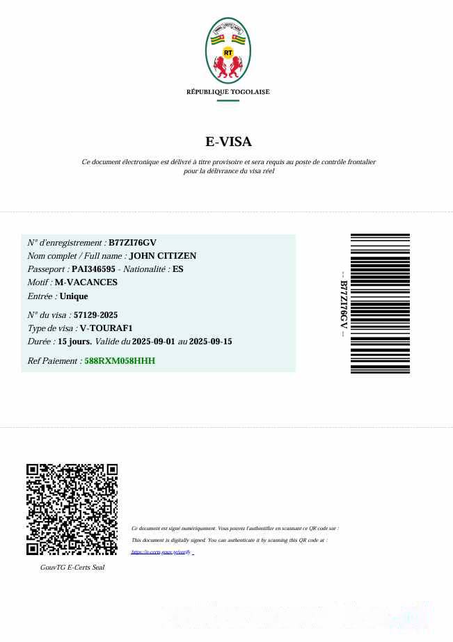 Togo e visa template in Word and PDF formats download template file