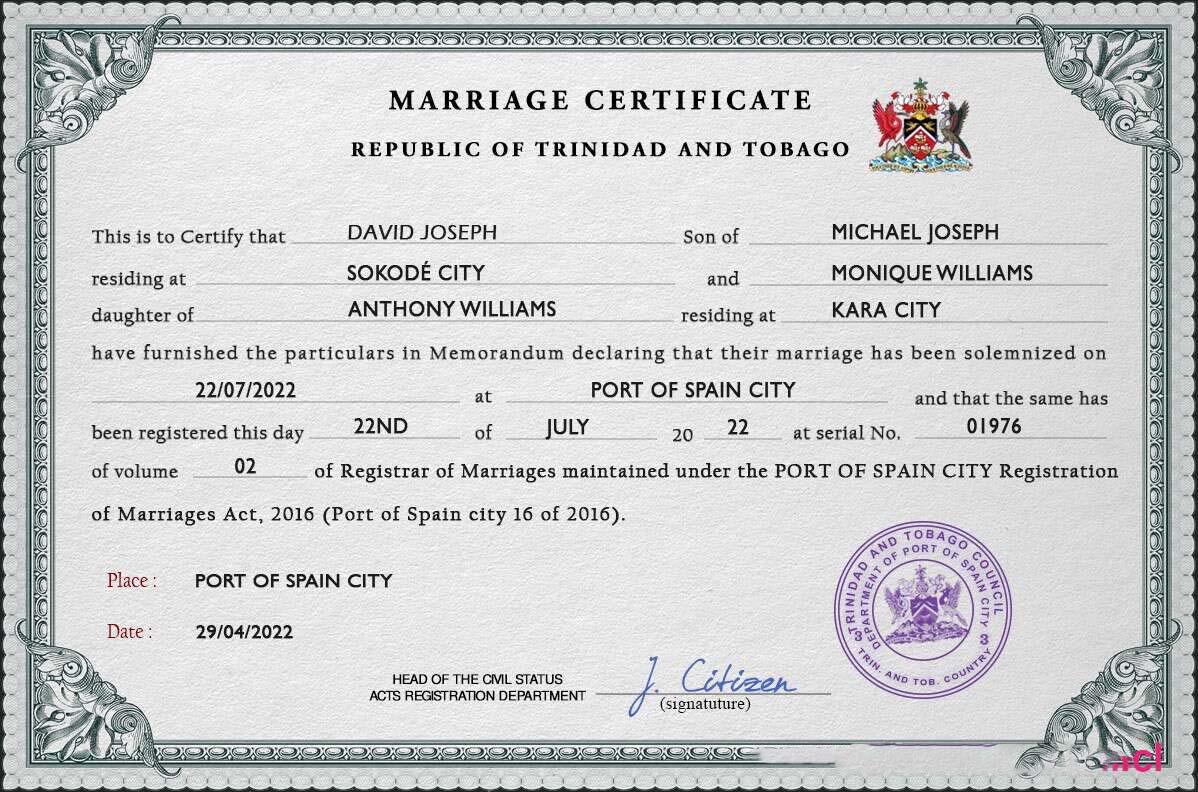Trinidad and Tobago marriage certificate PSD template download template file