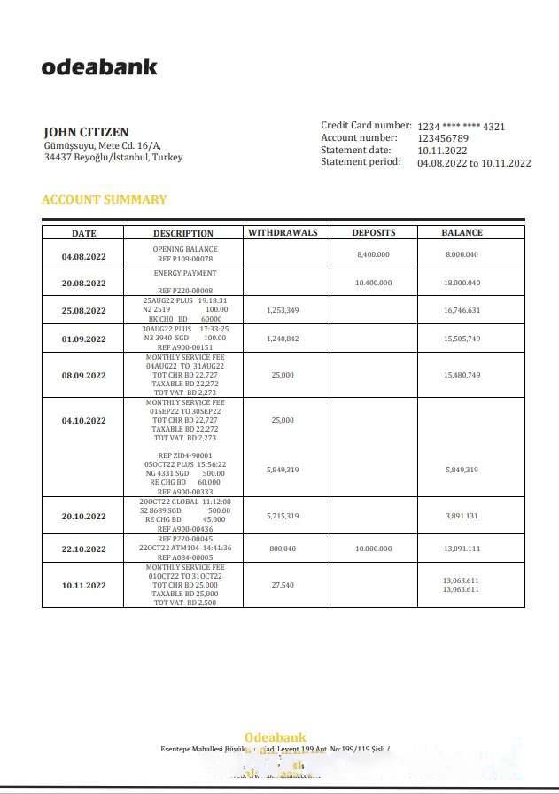 Be the first to review “Turkey Odeabank bank statement download template file”