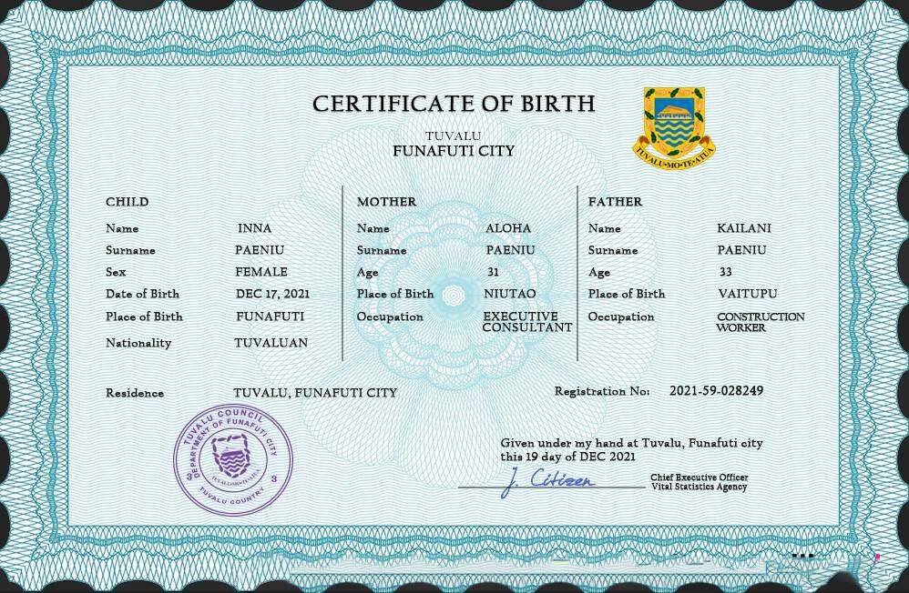 Be the first to review “Tuvalu vital record birth certificate PSD template download template file”