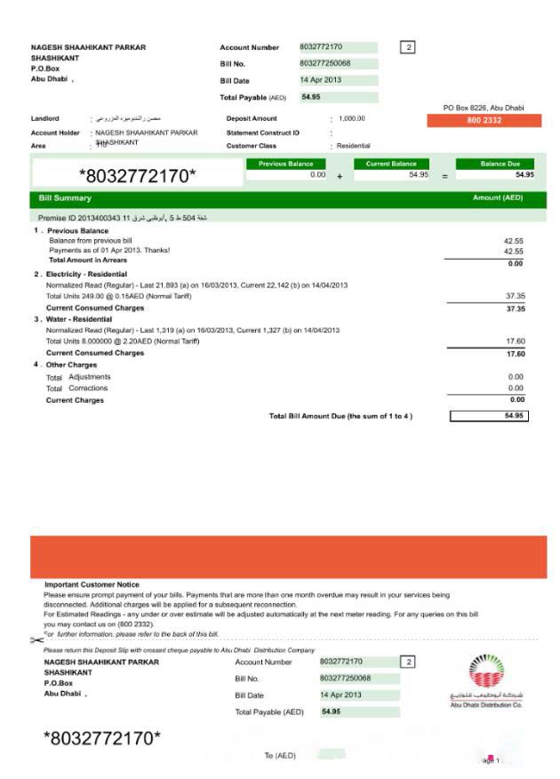 Be the first to review “UAE ABU DHABI DISTRIBUTION 7 CO. utility bill Word and PDF template, version 2 download template file”