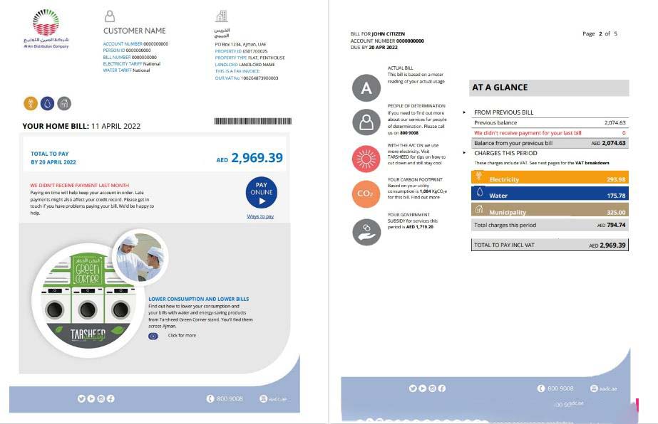 UAE Ajman Al Ain Distribution Co. Word and PDF utility bill template (5 pages) 1 2 download template file