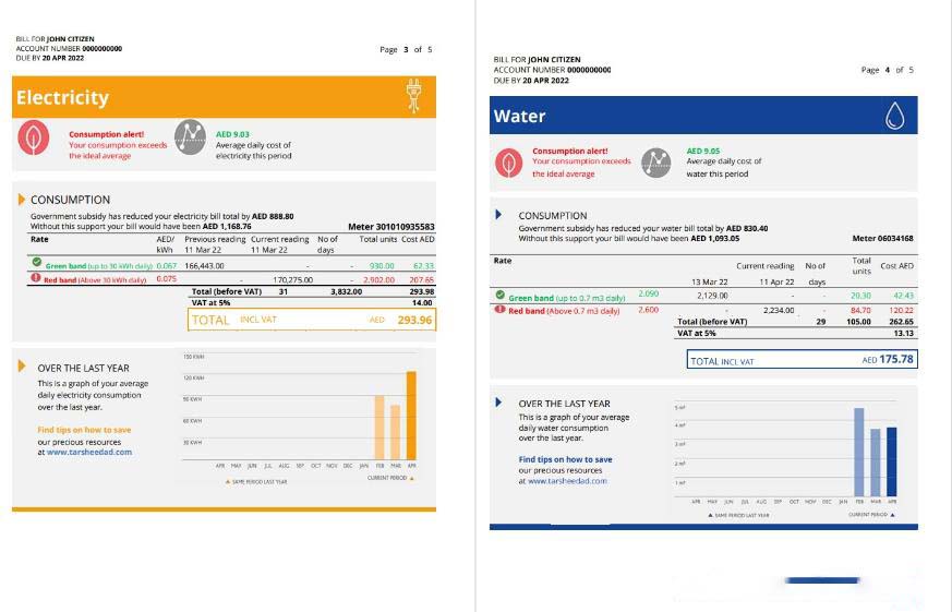 UAE Dubai Al Ain Distribution Co. Word and PDF utility bill template (5 pages) .3 4 download template file