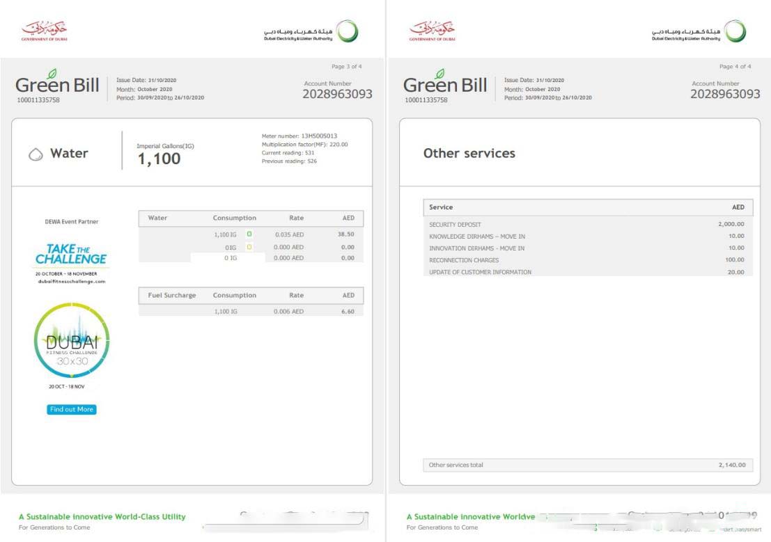 UAE Dubai Electricity & Water Authority utility bill template in Word and PDF format (4 pages) 3 4 download template file