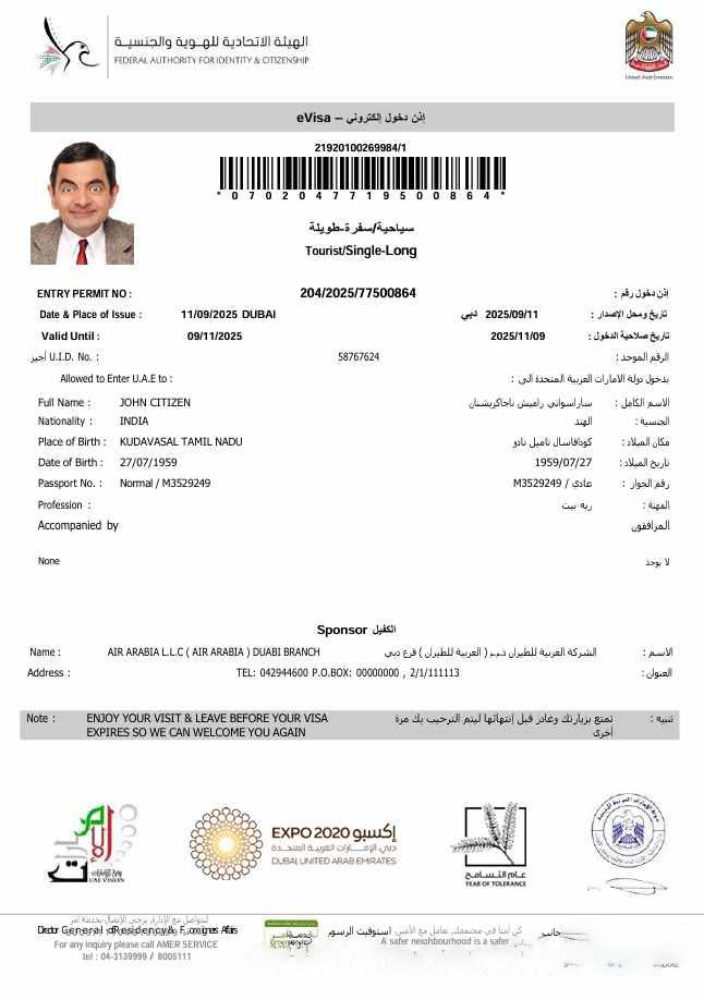 UAE e visa template in Word and PDF formats, version 4 download template file