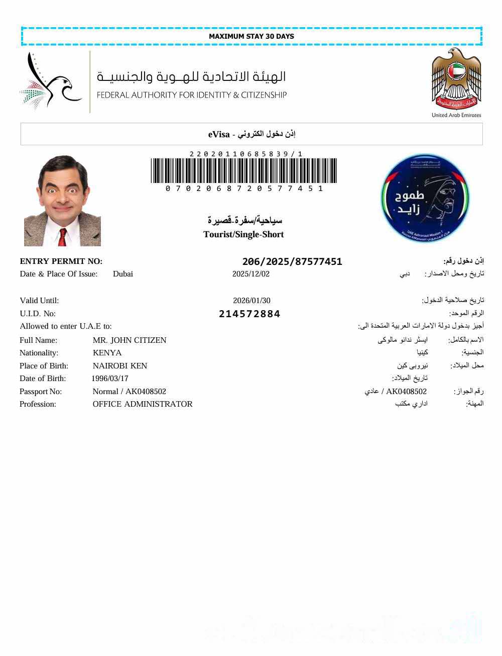 UAE e visa template in Word and PDF formats, version 6 download template file