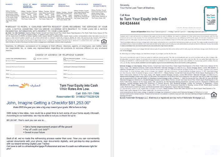 UAE Mashreq mortgage loan statement in Word and PDF formats , 4 pages 3 4 download template file
