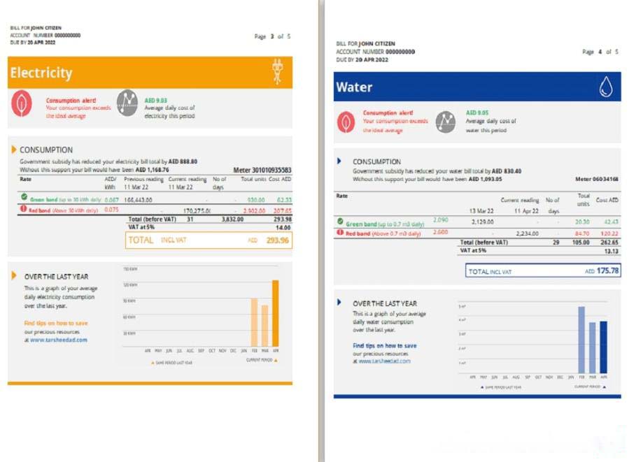 UAE Ras Al Khaimah Al Ain Distribution Co. Word and PDF utility bill template (5 pages) 3 4 download template file