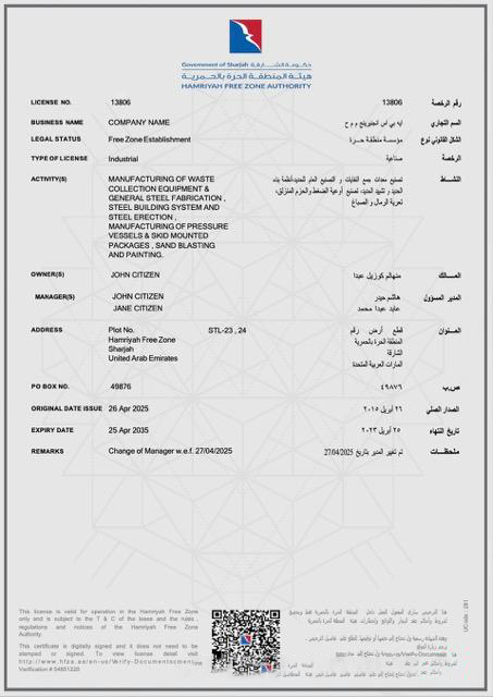 UAE?Al Hamriyah industrial license Word and PDF template download template file