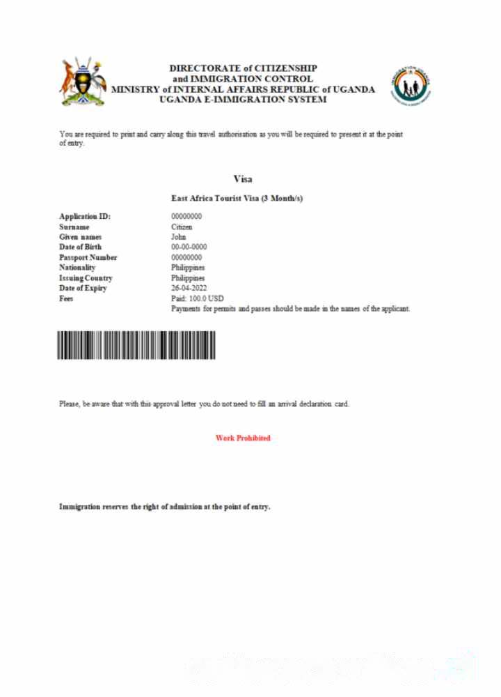 Uganda e visa in Word and PDF template download template file
