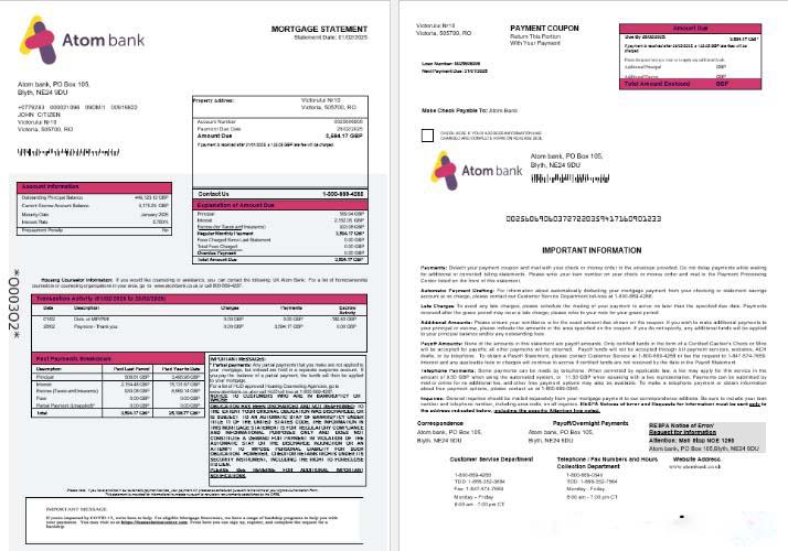 UK Atom Bank mortgage statement in Word and PDF formats 1 2 download template file