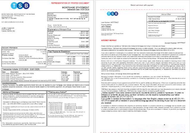 UK TSB Bank mortgage statement in Word and PDF formats, 3 pages 1 2 download template file