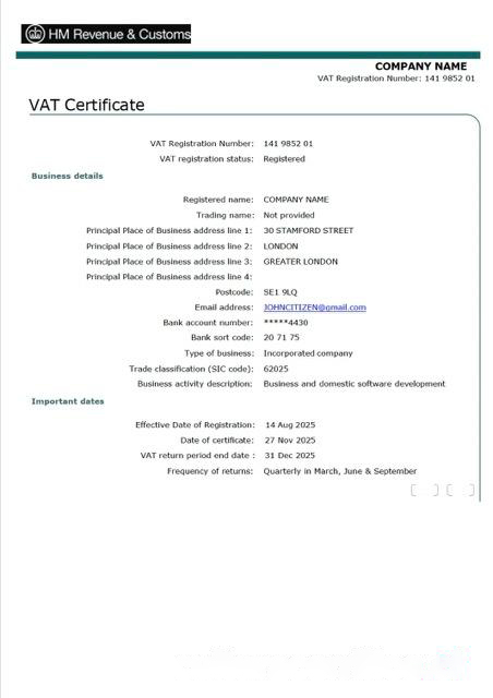 UK VAT certificate?Word and PDF template download template file