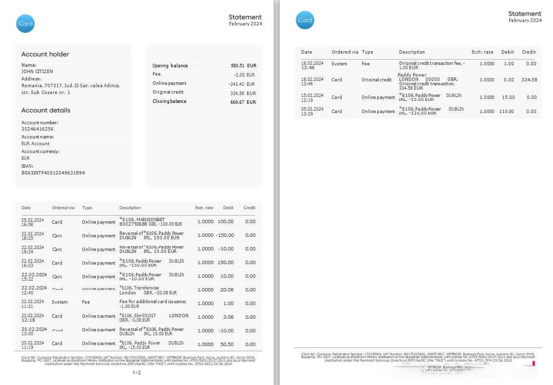 Be the first to review “Ukraine Icard bank statement 3 ?C 6 months Word and PDF example, 2 pages download template file”