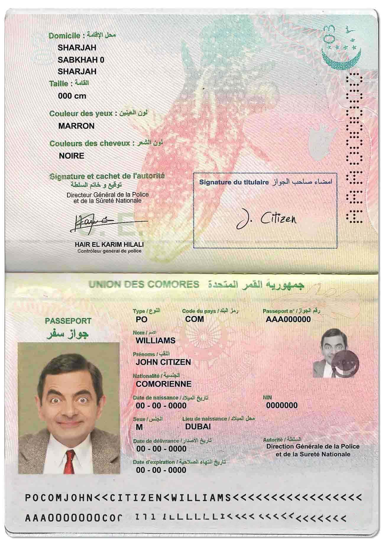 Union des Comores Passport Download Template File