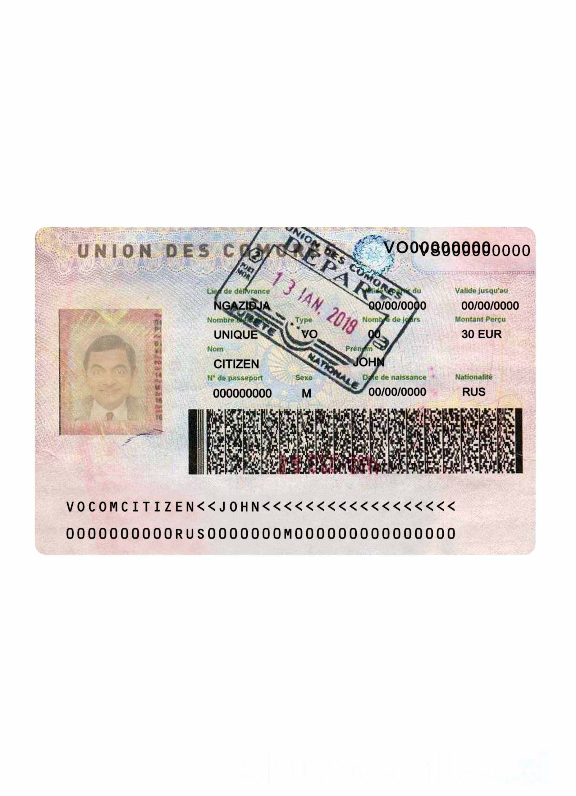 Union des Comores travel visa download template file