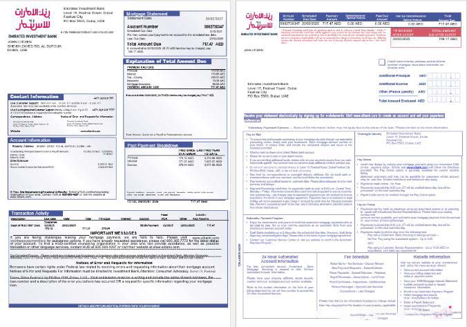 United Arab Emirates Investment Bank mortgage statement in Word and PDF formats, 3 pages 1 2 download template file