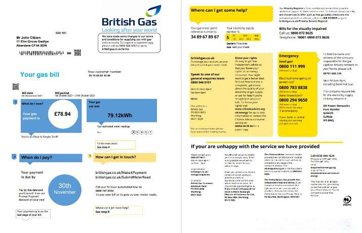 United Kingdom British Gas utility bill template in Word and PDF format fully editable (2 pages) version 1 download template file