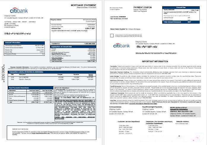 United Kingdom Citibank bank mortgage statement in Word and PDF formats 1 2 download template file
