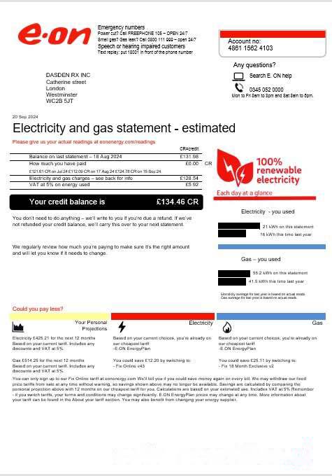 United Kingdom E.ON business utility bill template in Word and PDF formats, version 4 download template file