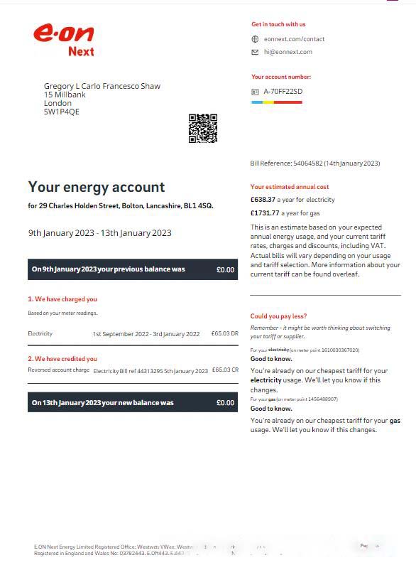 UNITED KINGDOM E ON utility bill Word and PDF template download template file