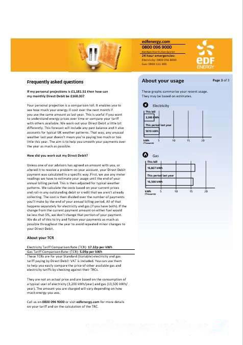 United Kingdom EDF business utility bill template in Word and PDF formats, 3 pages 3 download template file