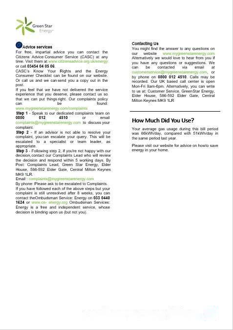 United Kingdom Green Star Energy energy business utility bill Word and PDF formats, 3 pages 3 download template file