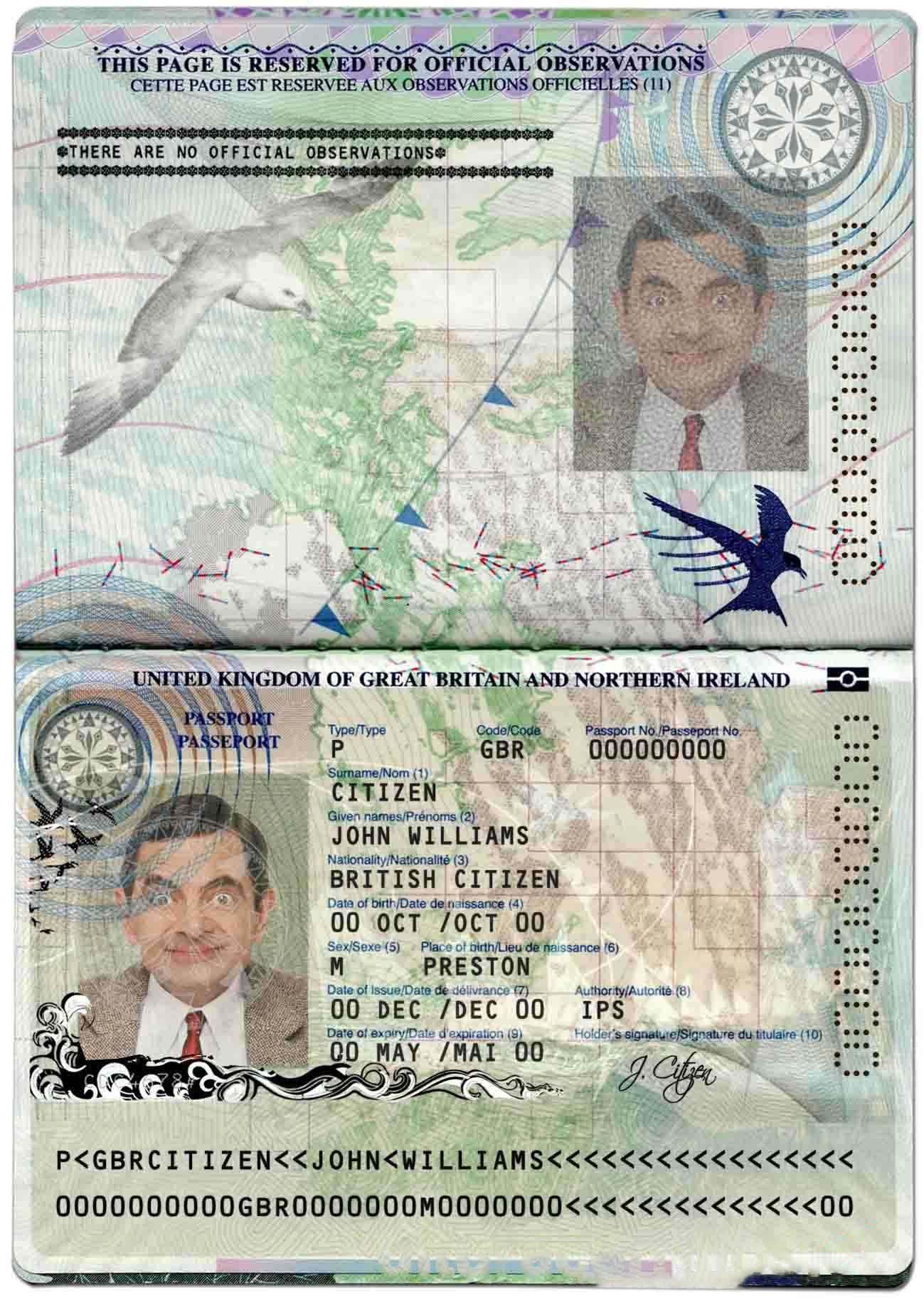 United Kingdom of Great Britain and Northern Ireland Passport 2010 Download Template File