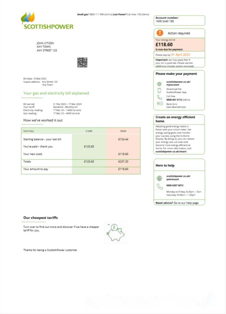United Kingdom Scottish Power utility bill Word and PDF template scr download template file