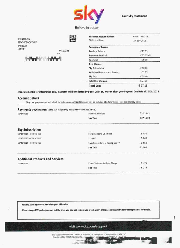 Be the first to review “United Kingdom Sky utility bill template, fully editable in PSD format download template file”