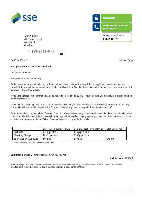 United Kingdom SSE Energy business utility bill template in Word and PDF formats, version 1 download template file