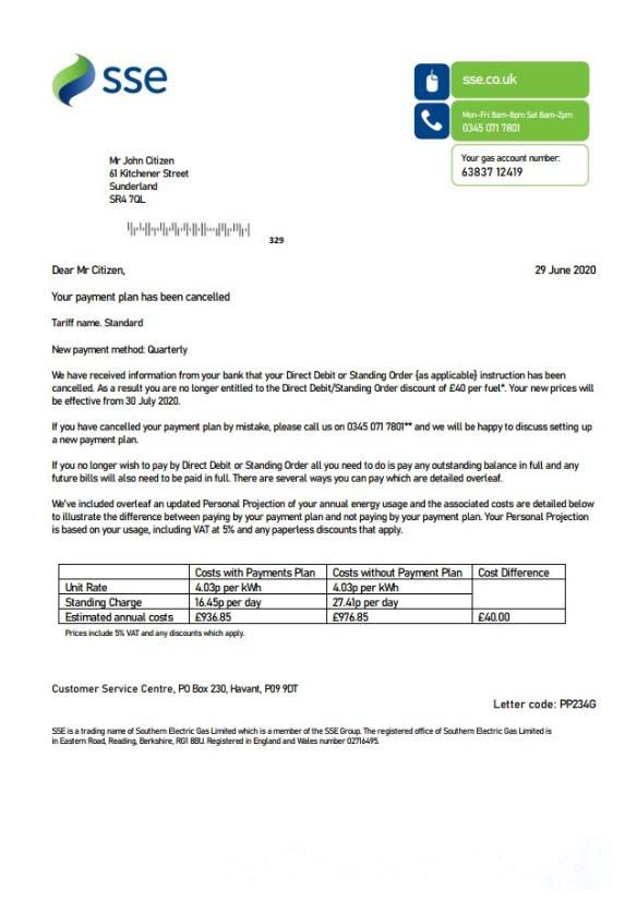 United Kingdom SSE Energy utility bill template in Word and PDF format, version 1 download template file