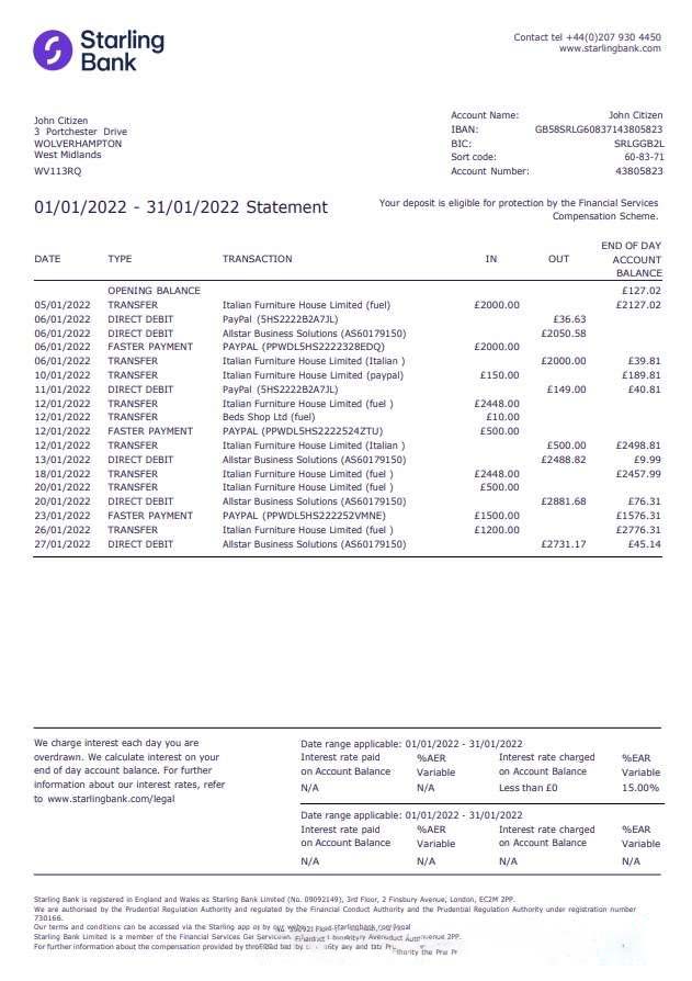 United Kingdom Starling Word and PDF template, version 2 download template file