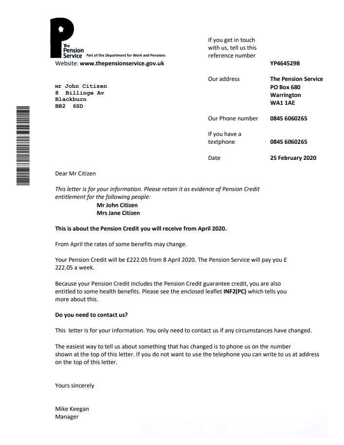 United Kingdom The Pension Service bank proof of address statement template in Word and PDF format download template file