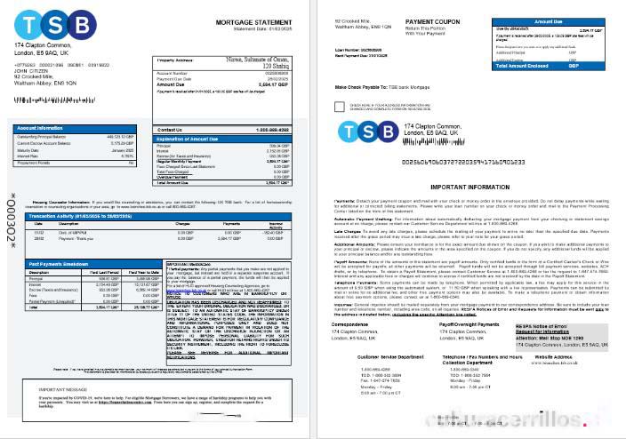 United Kingdom TSB bank mortgage statement in Word and PDF formats 1 2 download template file